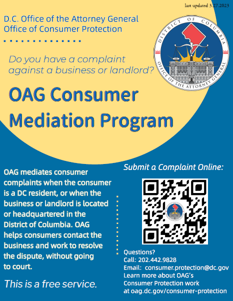 As the weather turns colder, the DC Attorney General’s Mediation Program is an important resource for neighbors who are having heating issues. If you are a District renter and your landlord is being unresponsive, OAG’s Mediation Program will prioritize these complaints and contact the responsible party the same day. Complaints can be submitted through the OAG Consumer Complaint Portal. OAG Mediation also staffs a hotline open from Monday-Friday from 9am to 5pm to respond to requests for help and provide accurate information to callers. You can reach this hotline by calling 202-442-9828.